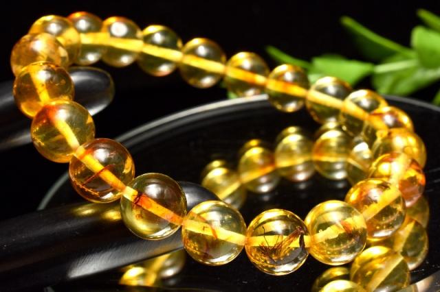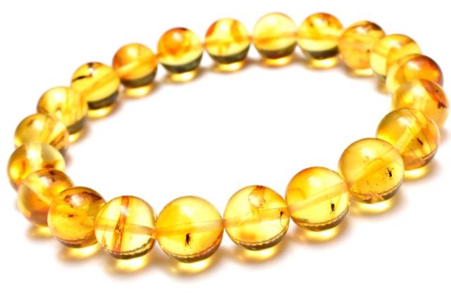 【1点物】全粒内包☆限定入荷! 虫入り琥珀アンバー 9.5mm ブレスレット 健康運・金運・仕事運【ネコポス送料無料】_MC2475