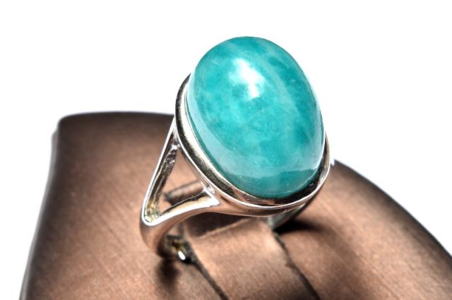 【1点物】シルバー925◇ロシア産 アマゾナイト 15x11mm オーバル 指輪リング(サイズ調整可) _PC7930