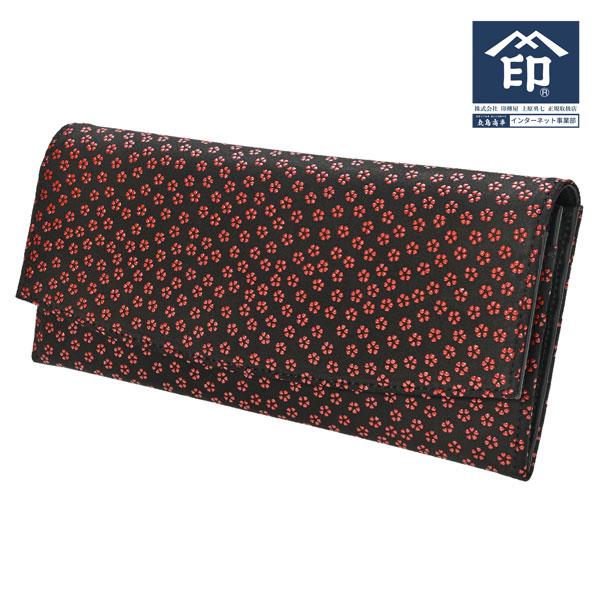 印伝 甲州印伝 印傳屋 上原勇七 財布 長財布 束入れ 2321 小桜 黒地×赤漆 鹿革 本革 レザー ブランド 冬ギフト 縁起 春財布 贈り物 YM02