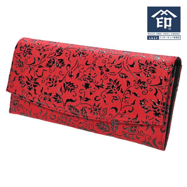 印伝 甲州印伝 印傳屋 上原勇七 財布 長財布 束入れ 2321 花唐草 赤地×黒漆 鹿革 本革 レザー ブランド 冬ギフト 縁起 春財布 贈り物 YM02