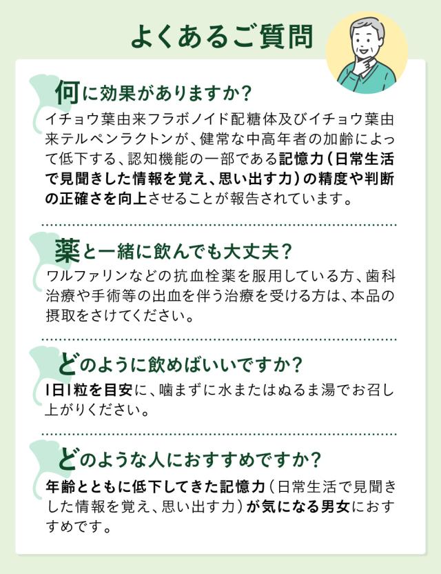 イチョウ葉 サプリメント 認知ヘルプ 認知機能 記憶力向上 ホスファチジルセリン PQQ プラズマローゲン バコパサポニン DHA EPA コエンザイムQ10
