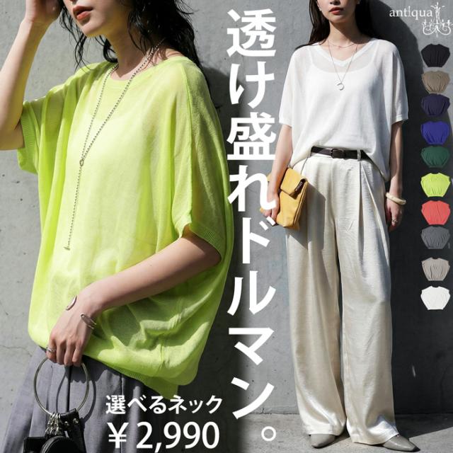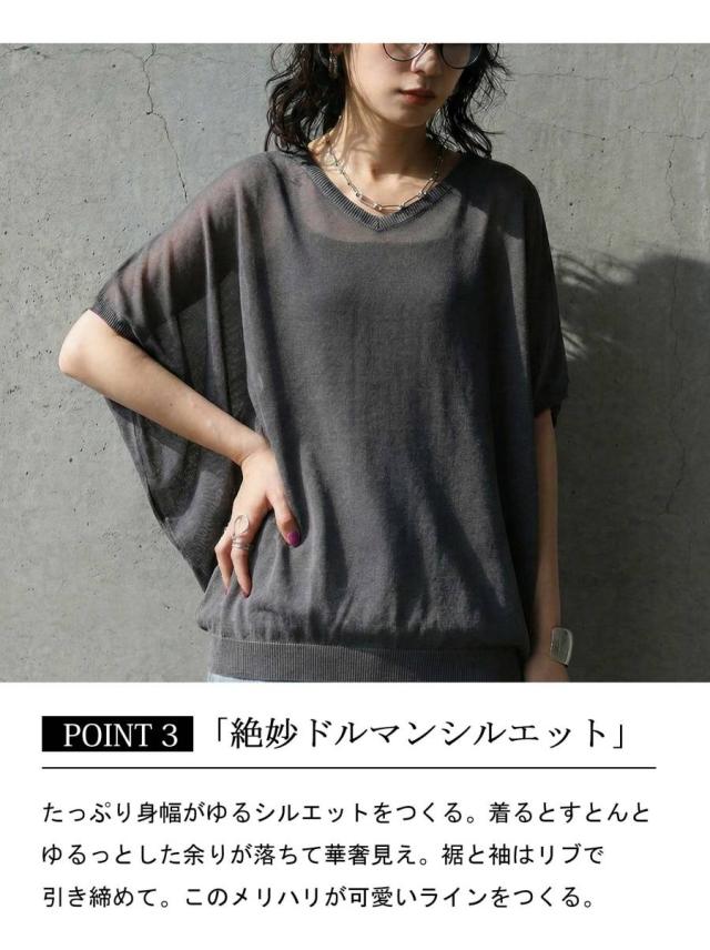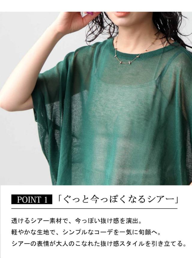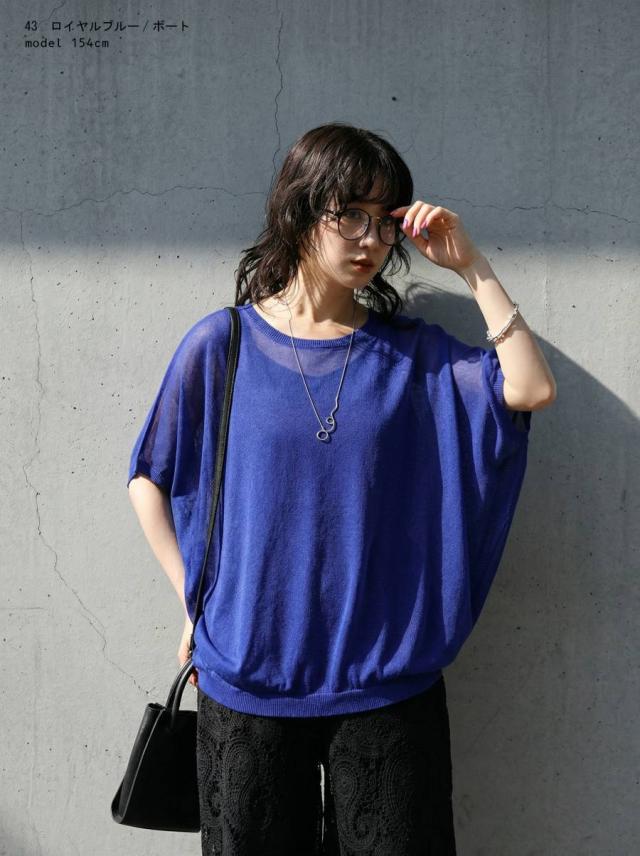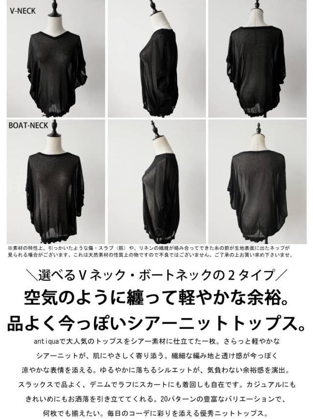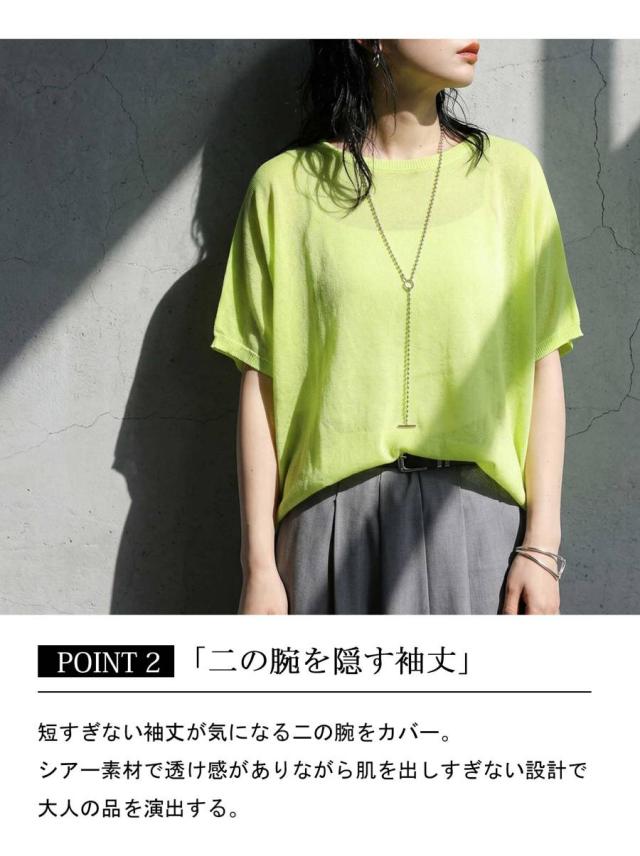 シアー ニット レディース 半袖 ドルマン Vネック ボートネック・(80)メール便可 春新作