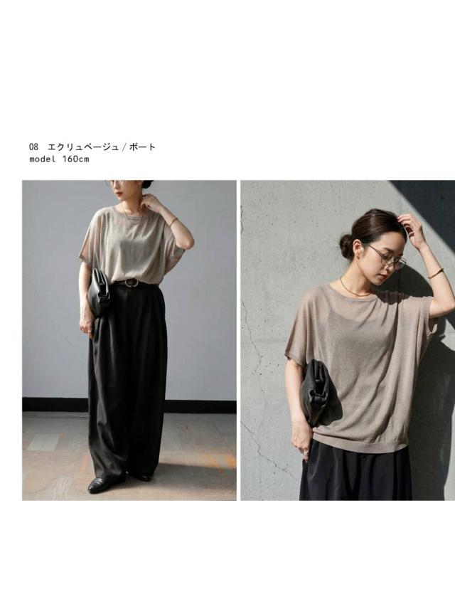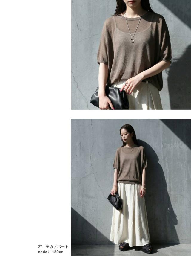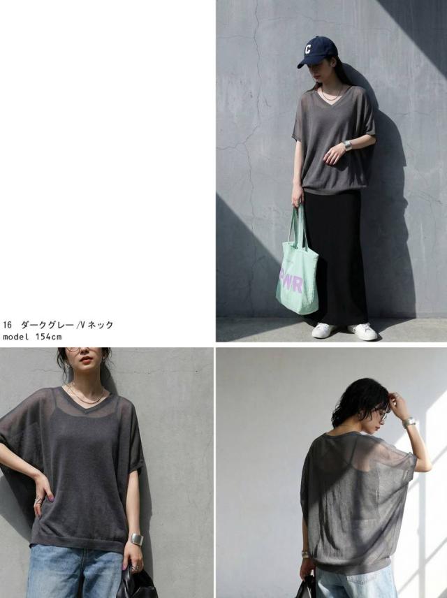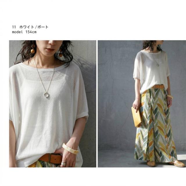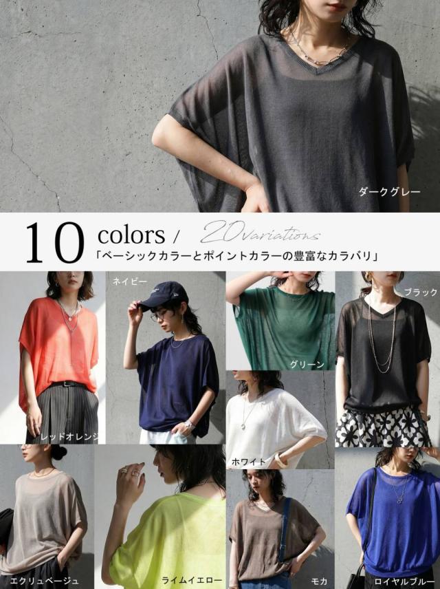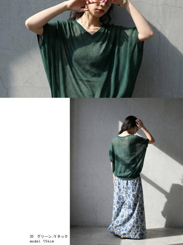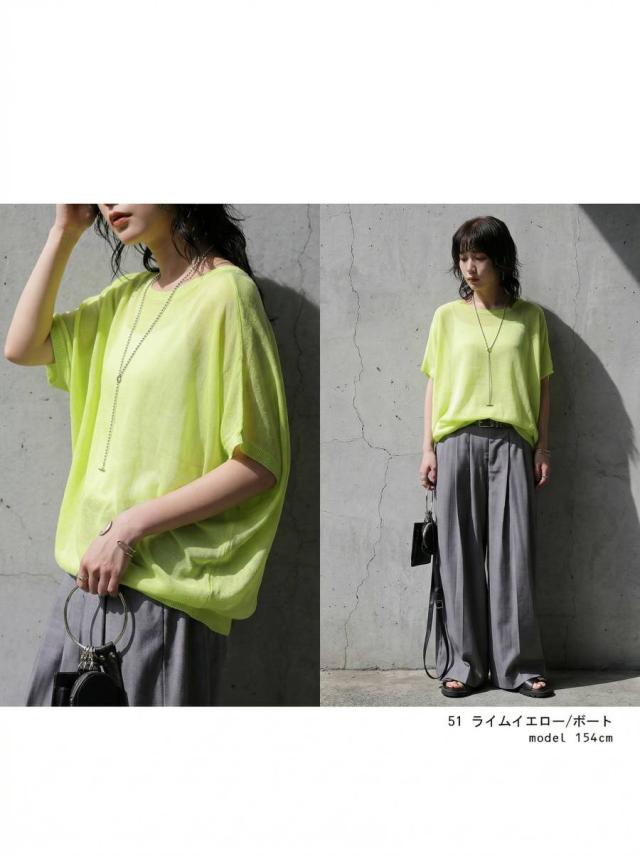 シアー ニット レディース 半袖 ドルマン Vネック ボートネック・(80)メール便可 春新作