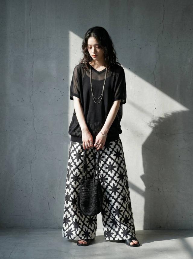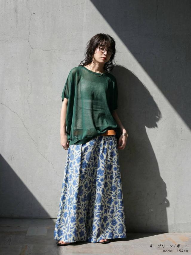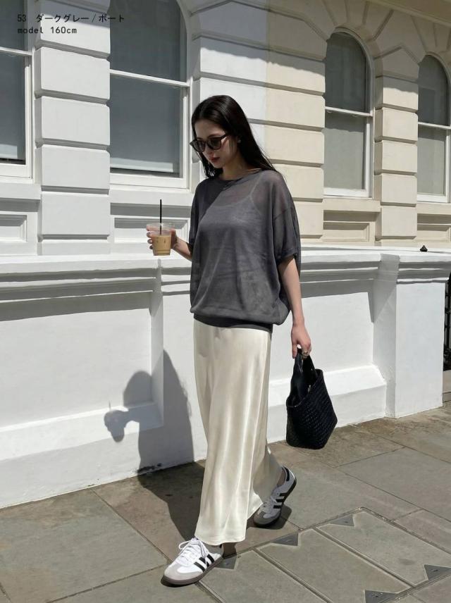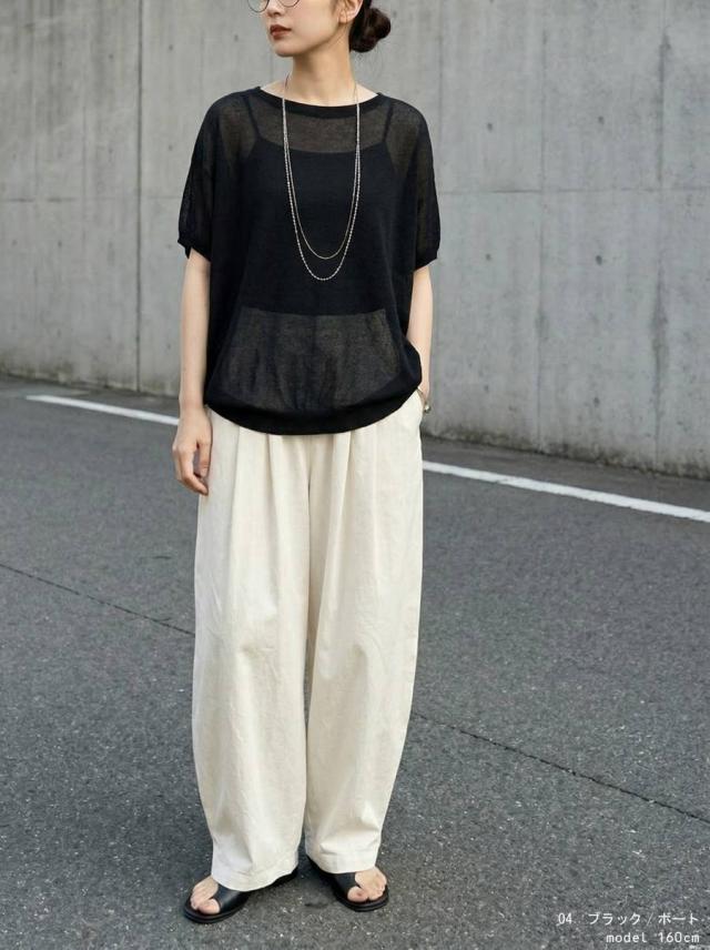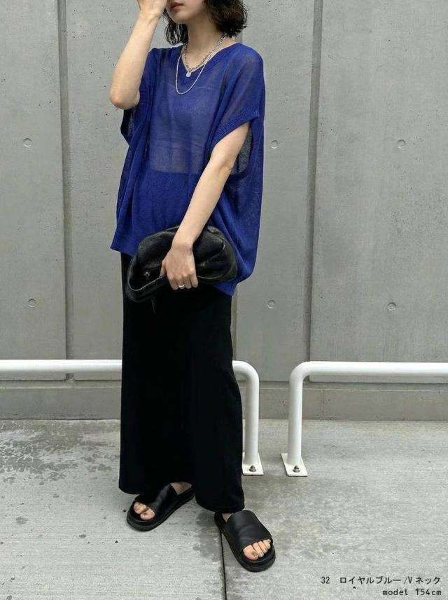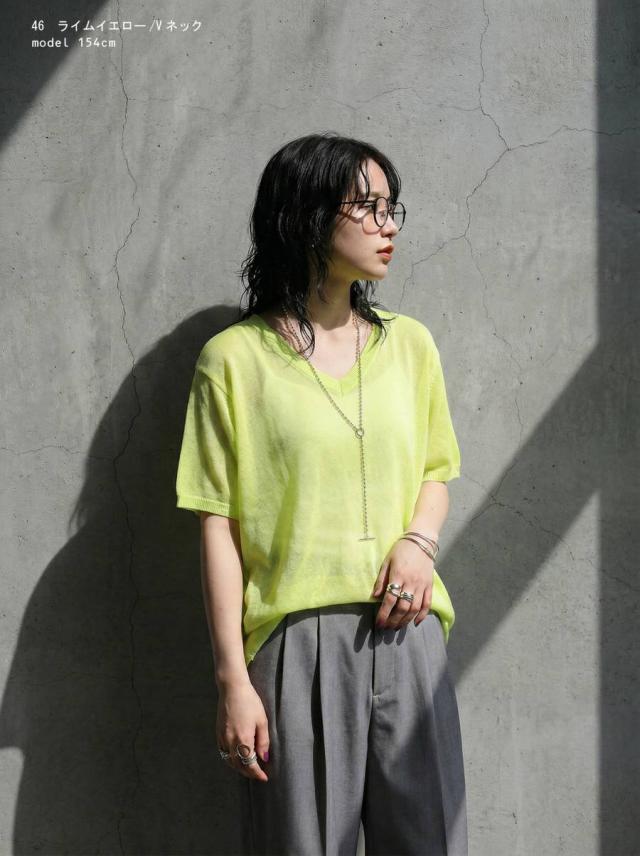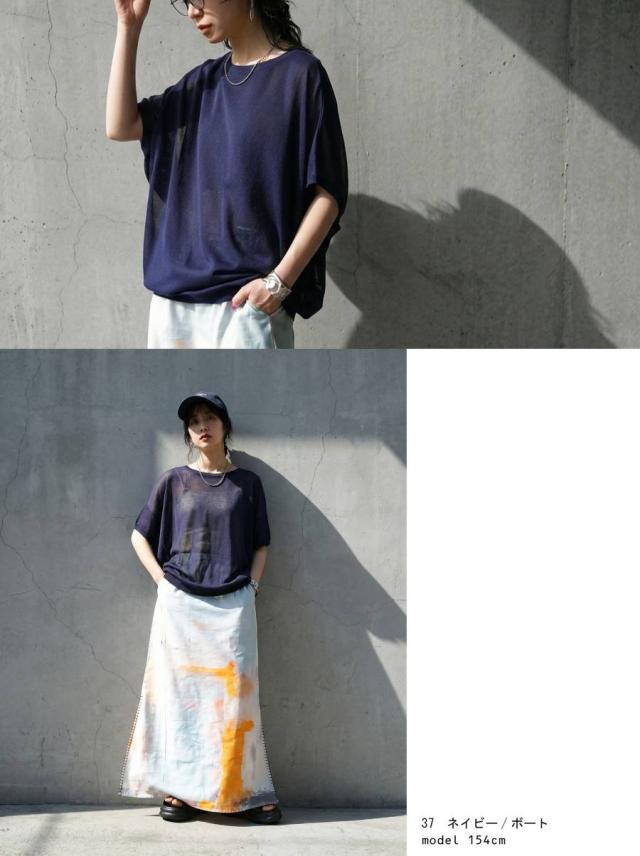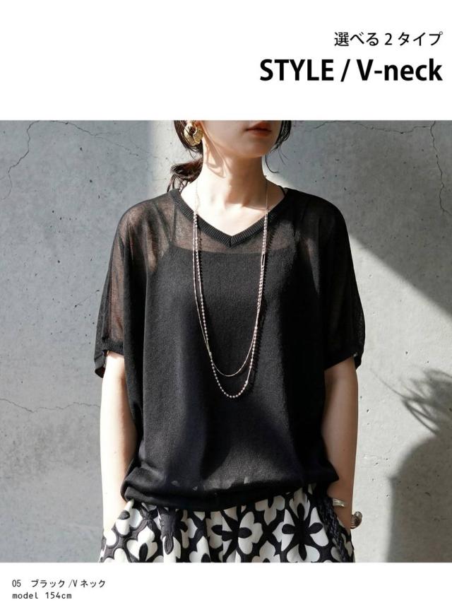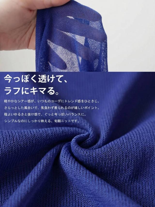 無地ながらシアーな透け感が特徴で、柄を活かしたインナーとのレイヤードも楽しめます。