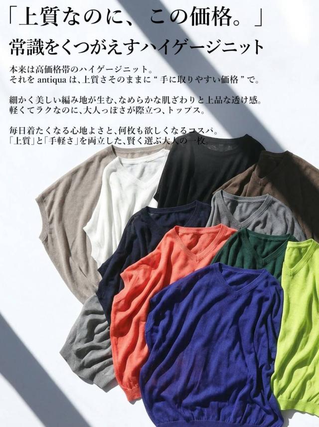 細い糸で編み上げたハイゲージニットが、軽やかで上品な印象を演出する一枚です。
