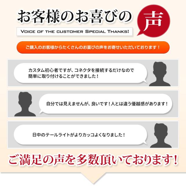 | 純正状態ではブレーキ時に点灯しない一部のテールランプが、ブレーキ時でも点灯することが出来る商品になります。 |