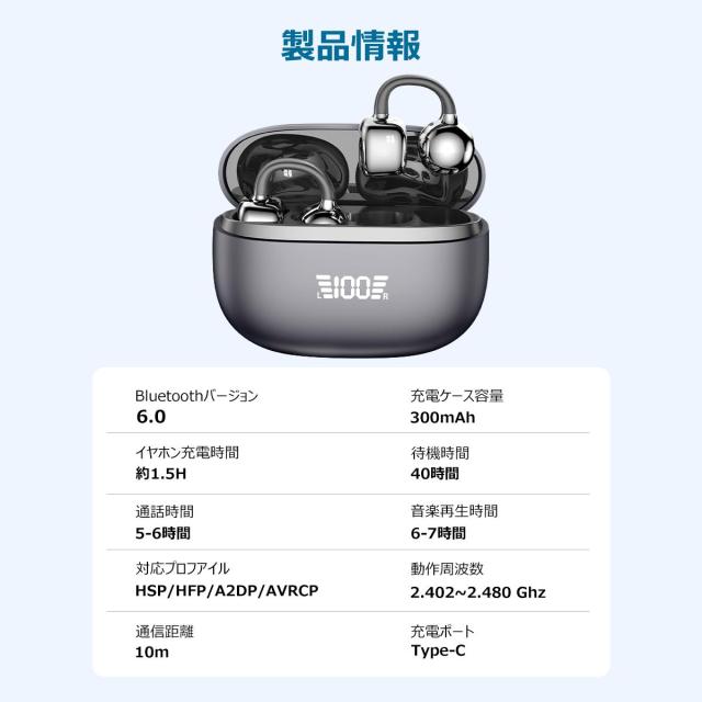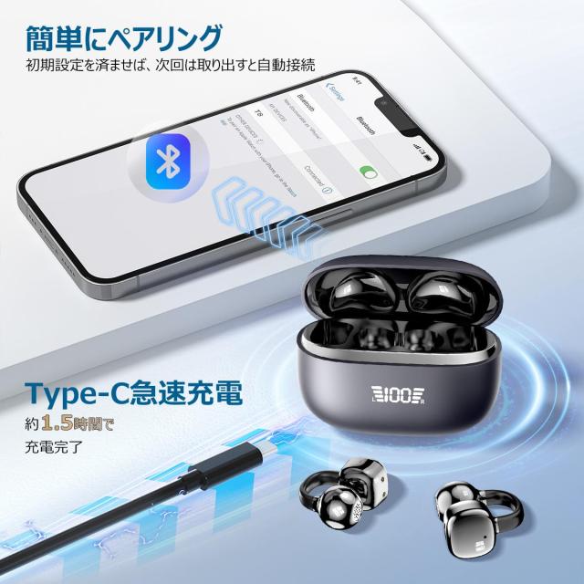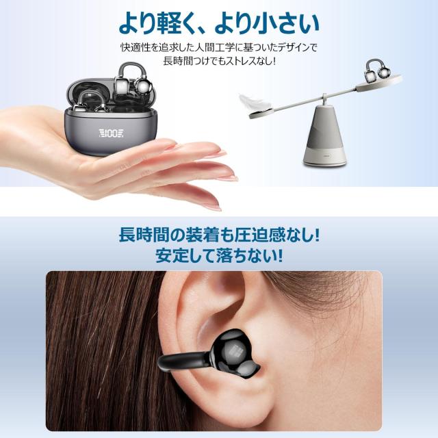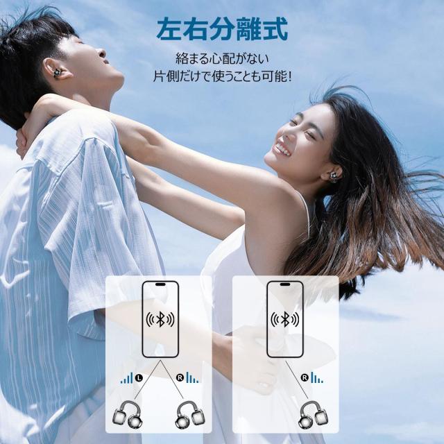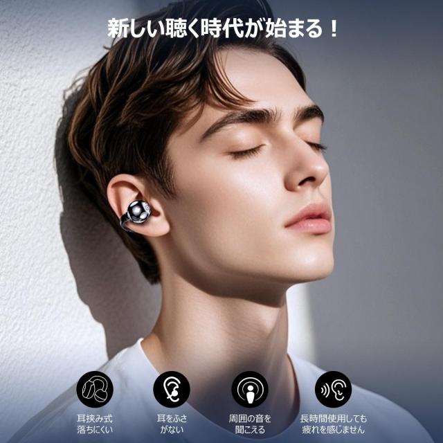ワイヤレスイヤホン イヤホン Bluetooth6.0 イヤーカフ型 ENCノイズキャンセル ワイヤレス イヤホン 耳挟み式 残量表示 瞬時接続 自動ペア Type-C充電 iPhone17