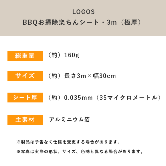 【正規販売店】 LOGOS ロゴス BBQお掃除楽ちんシート・3m(極厚) 81314013 バーベキュー 調理 料理 焦げ付かない アウトドア キャンプ 厚め 大きめ 片付け