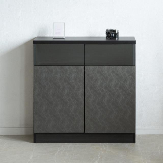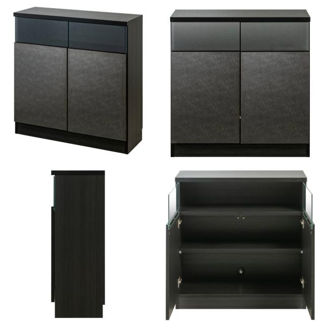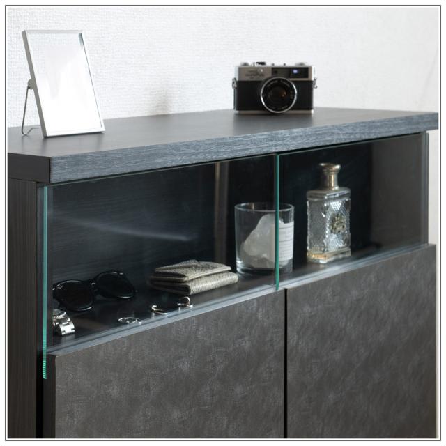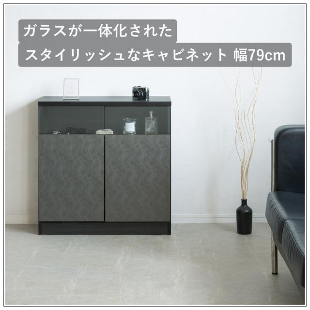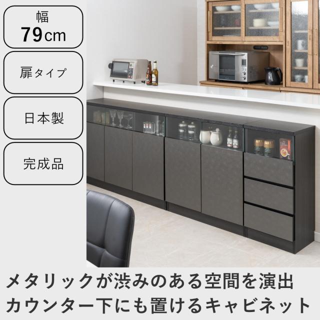 カウンター下収納 幅79cm キャビネット 日本製 完成品 ガラス窓 ( 棚 ラック メタリック カウンター下 可動棚 ルーター収納 ディスプレイ 窓下 組み合わせ 収納 家具 薄型 奥行スリム マットブラック グレー )