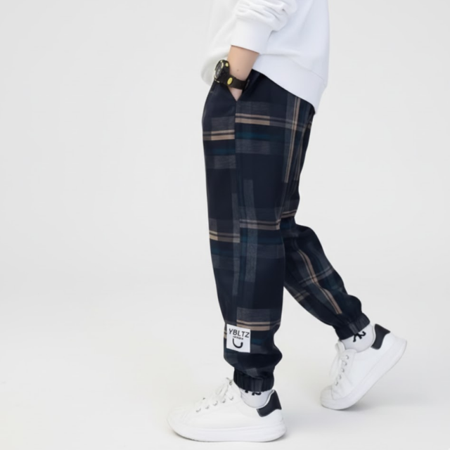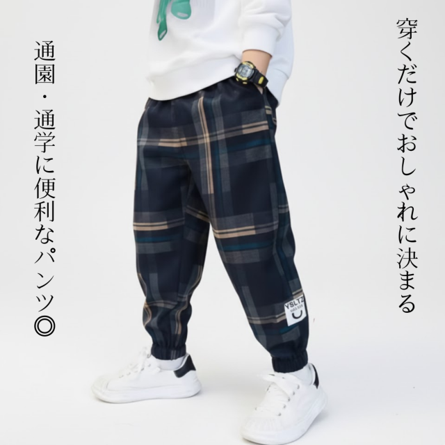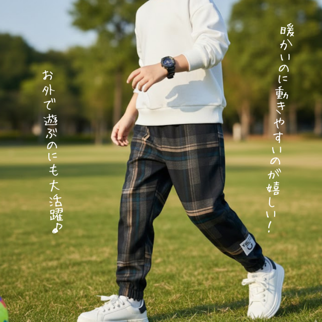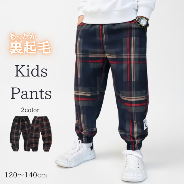 「裏起毛チェック柄キッズパンツ」です。