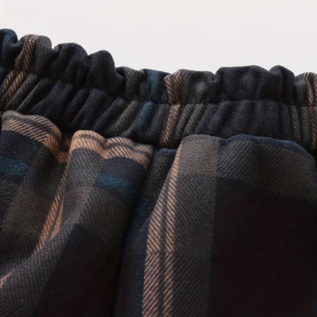 落ち着いたチェック柄で、どんなトップスにも合わせやすい。