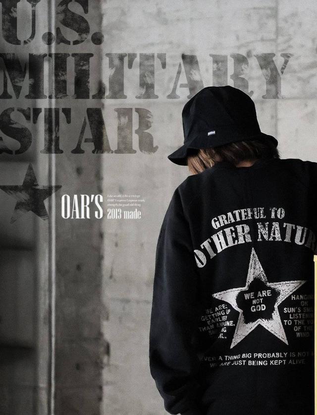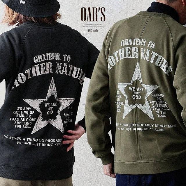 トレーナー スウェット メンズ レディース 暖かい 裏起毛 しっかり 丈夫 軽い 柔らかい USA コットン 綿100 活性染め プリント 星 ラグラン リブ ポケット お尻 隠れ カバー 色合い スエット アメカジ パティ OAR’S オールズ