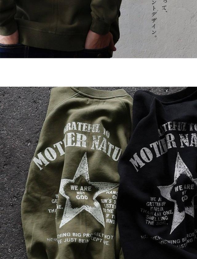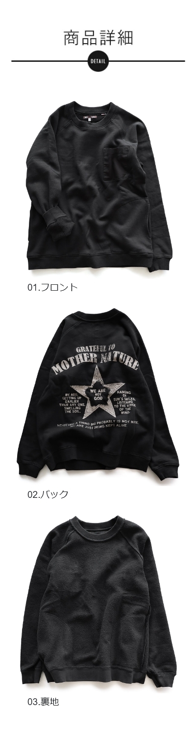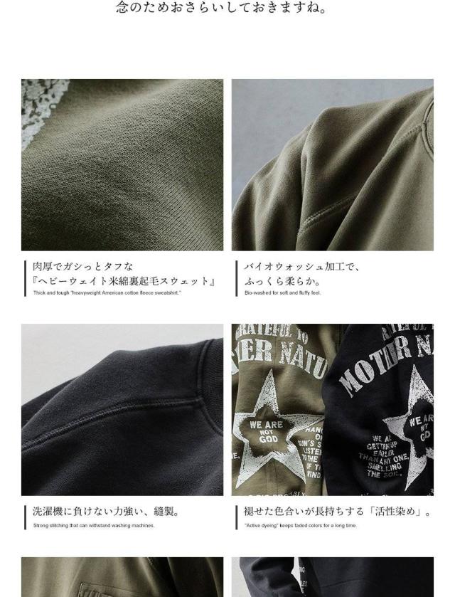 トレーナー スウェット メンズ レディース 暖かい 裏起毛 しっかり 丈夫 軽い 柔らかい USA コットン 綿100 活性染め プリント 星 ラグラン リブ ポケット お尻 隠れ カバー 色合い スエット アメカジ パティ