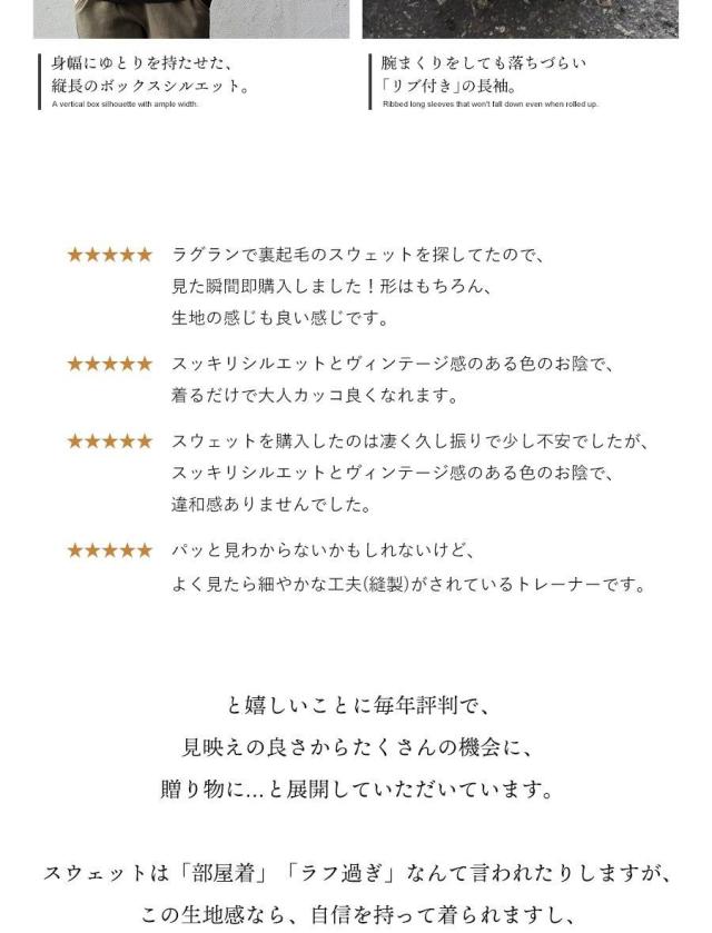 ・肉厚でガシっとタフな『ヘビーウェイト米綿裏起毛スウェット』。