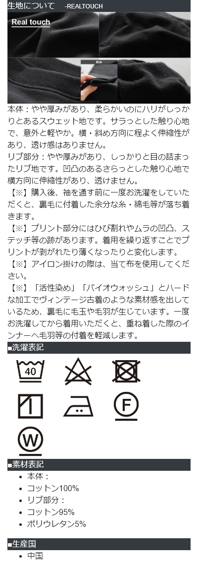 [素材]本体:コットン100% リブ部分:コットン95% ポリウレタン5%