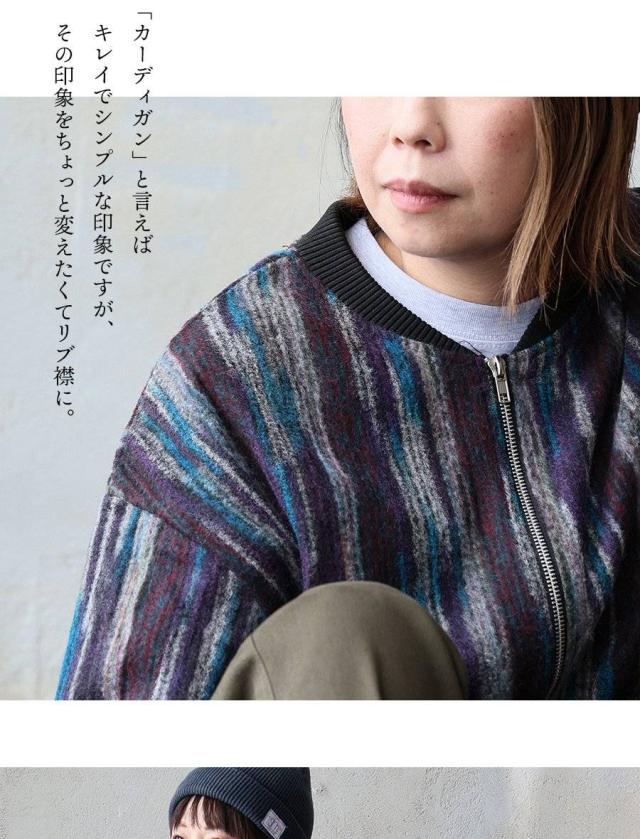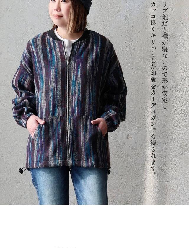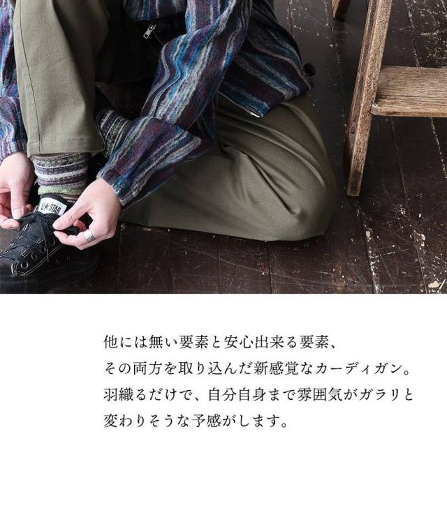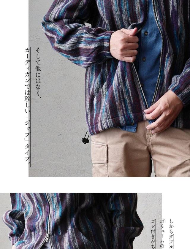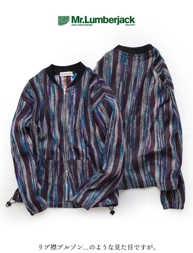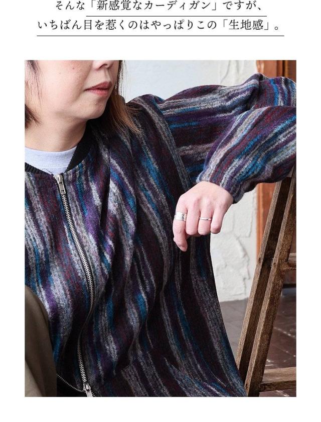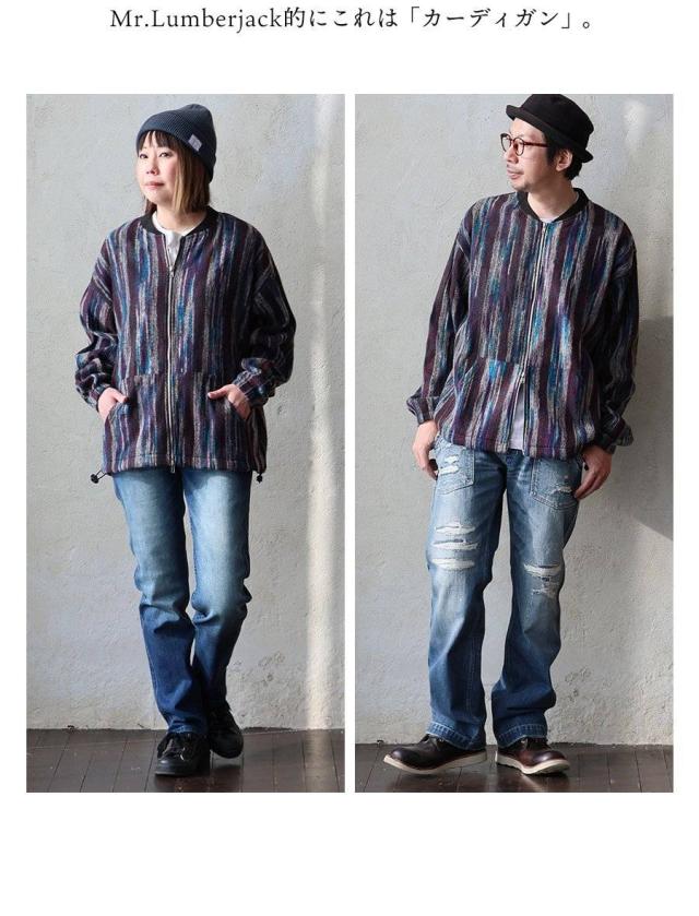 カーディガン ジップアップ 長袖 メンズ レディース ポケット ワイド 着痩せ 裏使い ニット ランダムストライプ お尻 体系 カバー 袖ゴム 裾ドローコード ゆったり 大き目 大きいサイズ カジュアル パティ Mr.Lumberjack ミスターランバージャック