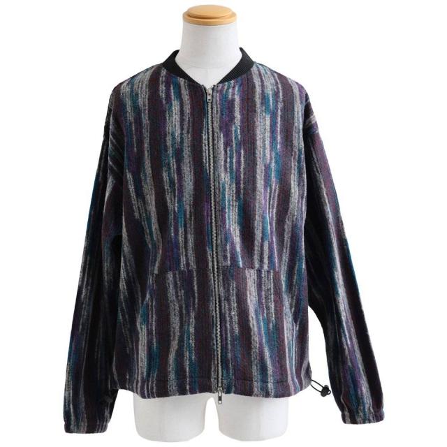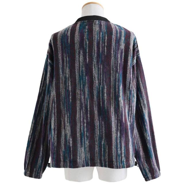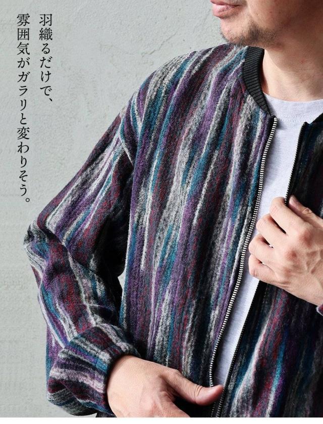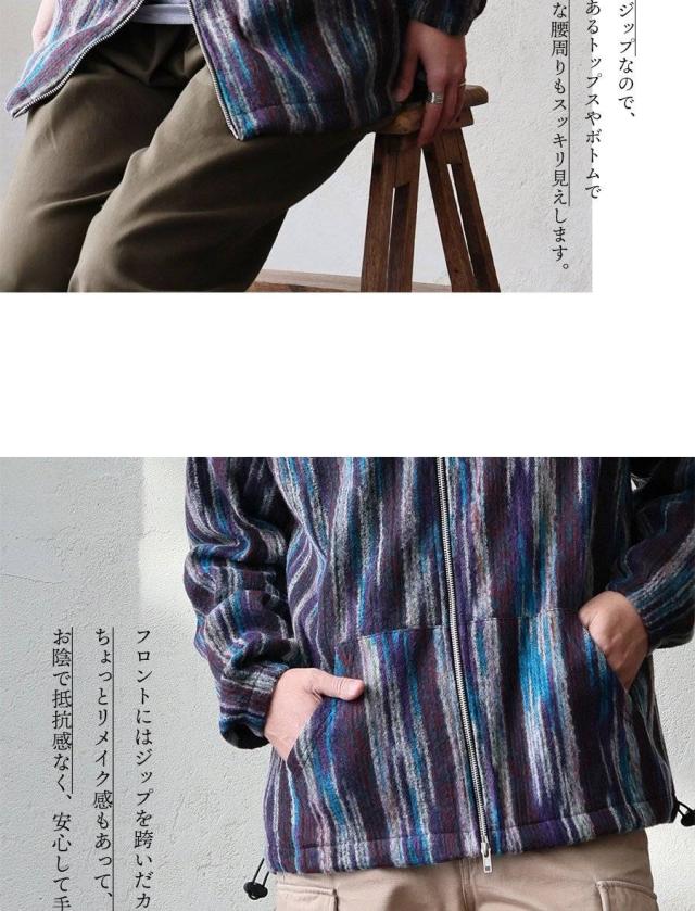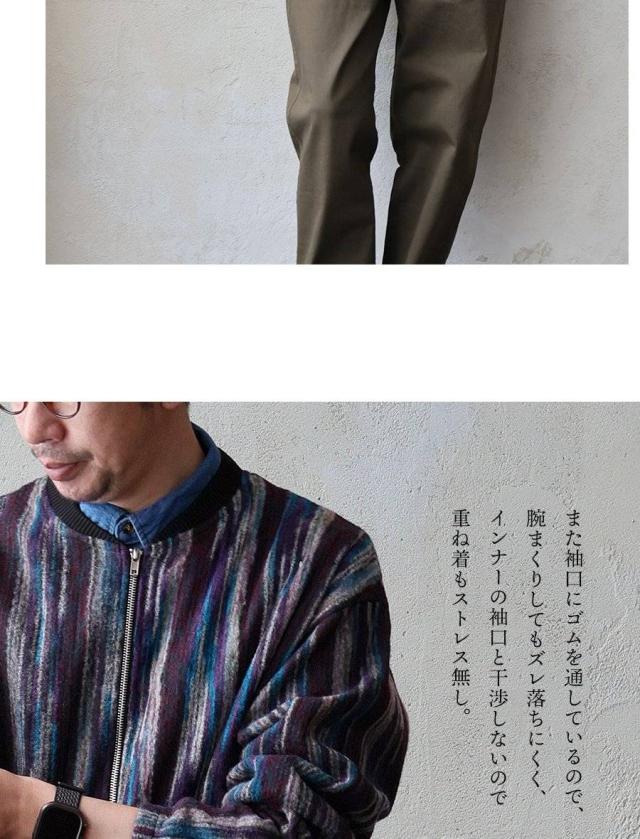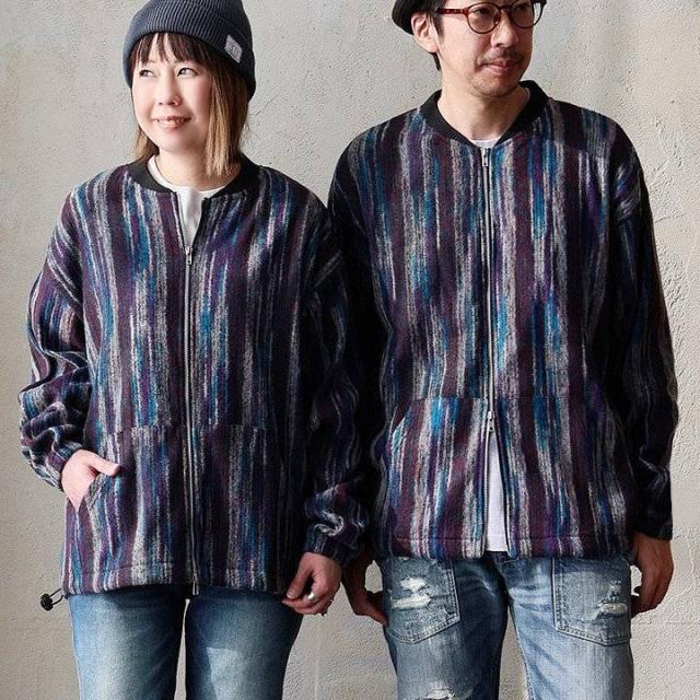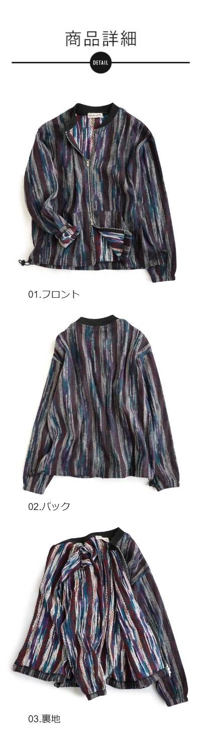 カーディガン ジップアップ 長袖 メンズ レディース ポケット ワイド 着痩せ 裏使い ニット ランダムストライプ お尻 体系 カバー 袖ゴム 裾ドローコード ゆったり 大き目 大きいサイズ カジュアル パティ Mr.Lumberjack ミスターランバージャック