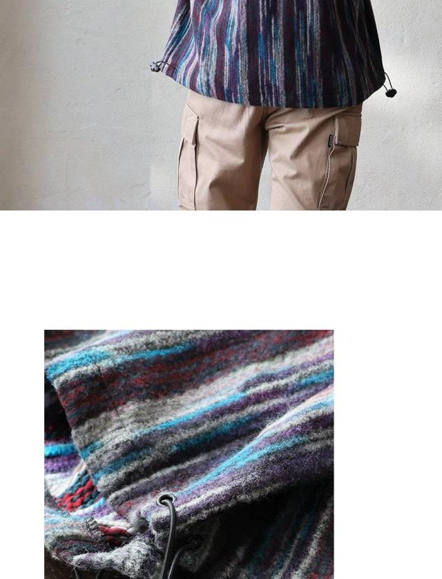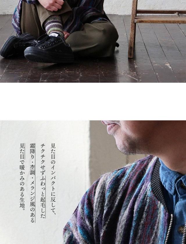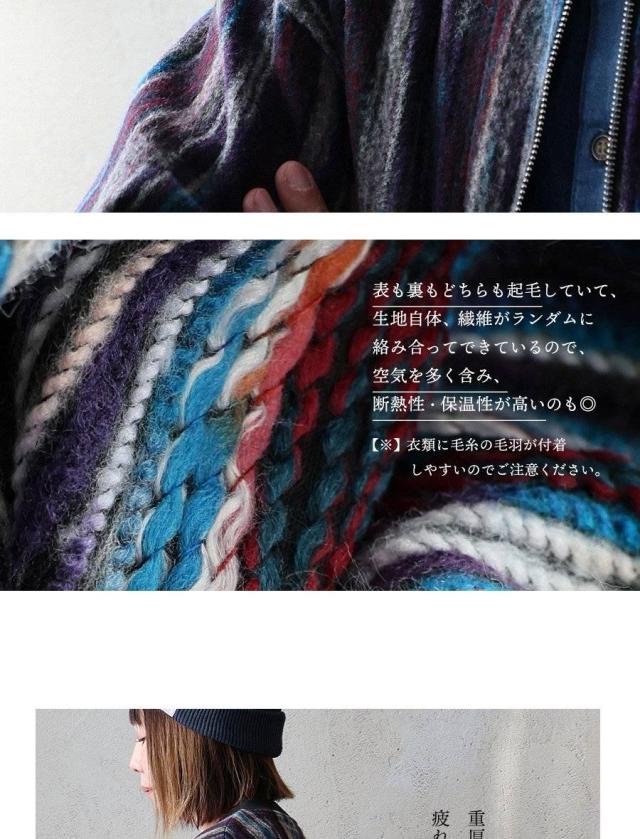 ・見た目のインパクトに反して、チクチクせずふわっと起毛した霜降り・杢調・メランジ風のある見た目で暖かみのある生地。
