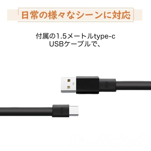 電源:モバイルバッテリー、スマートフォンの充電アダプター、車載充電器など、さまざまな電源で使用可能