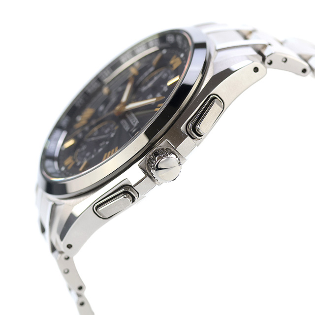 正規品 7年保証キャンペーン 送料無料 シチズン アテッサ チタン 数量限定 クロノグラフ 電波ソーラー 日本製 メンズ 腕時計 AT8244-57E CITIZEN ATTESA KIZASHI Collection アナログ ブラック 黒 ◆新しいときのはじまりを告げる光が、腕元で華やかに彩りを添える、年始のブランド横断企画。サンレイパターンとゴールドをあしらい、中心からまっすぐと広がっていく光を表現した、特別感のあるデザイン。ATTESA、EXCEED、xC、CITIZEN COLLECTIONの4ブランドで展開します。チタニウムで次世代を進み続ける、シチズン ATTESA(アテッサ)。ロングセラーの人気モデル「AT8040」をベースにアレンジ。中心からまっすぐ広がっていく光を文字板上にデザインしました。サンレイパターンを描いたブラックの文字板に、ゴールドのローマ数字インデックスをレイアウト。黄金の輝きがエレガントな印象を演出します。デュラテクトプラチナのケースとバンドが明るい輝きをプラス。デュラテクトDLCのベゼルが、全体の印象を引き締めています。サファイアガラスの外周は、蒸着で仕上げたゴールドのリングが輝きます。 発売日:2026年1月発売