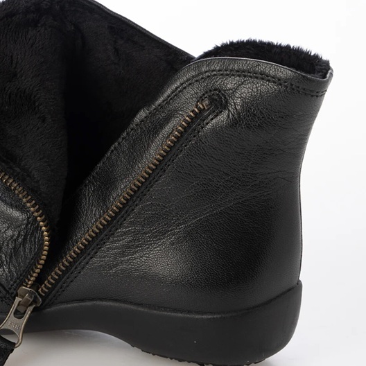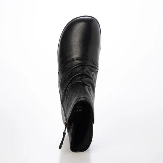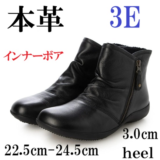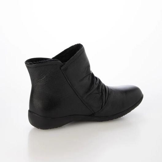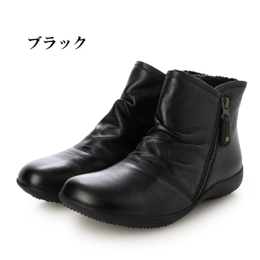 本革 牛革 レザーブーツ ブーツ ソフトレザー あったかインナーボア入り 斜めファスナー シャーリングデザイン フラットソール コンフォートブーツ 履きやすい 歩きやすい ブラック シンプル 定番デザイン