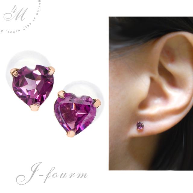 ロードライトガーネット ピアス 送料無料 K10PGピンクゴールド 4mm ハートシェイプ ラップドin スタッド 両耳ペア