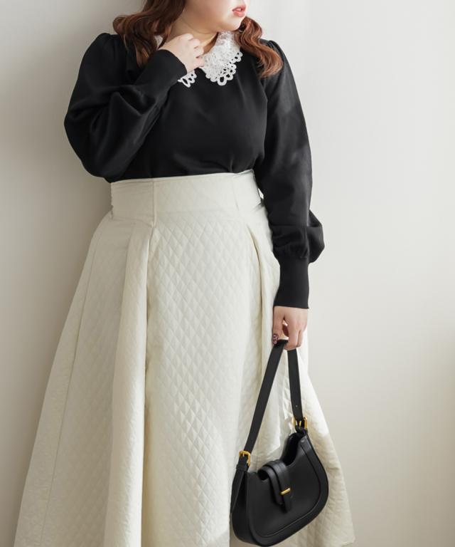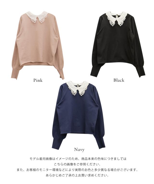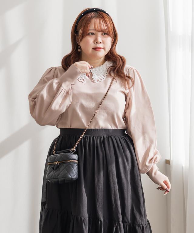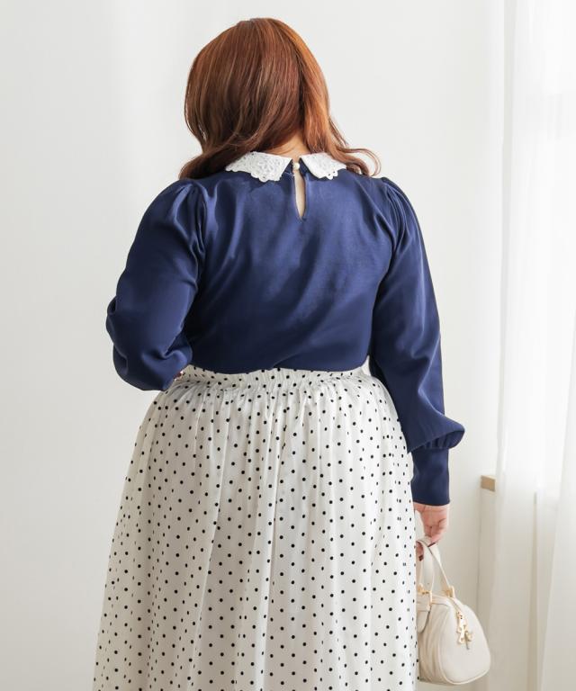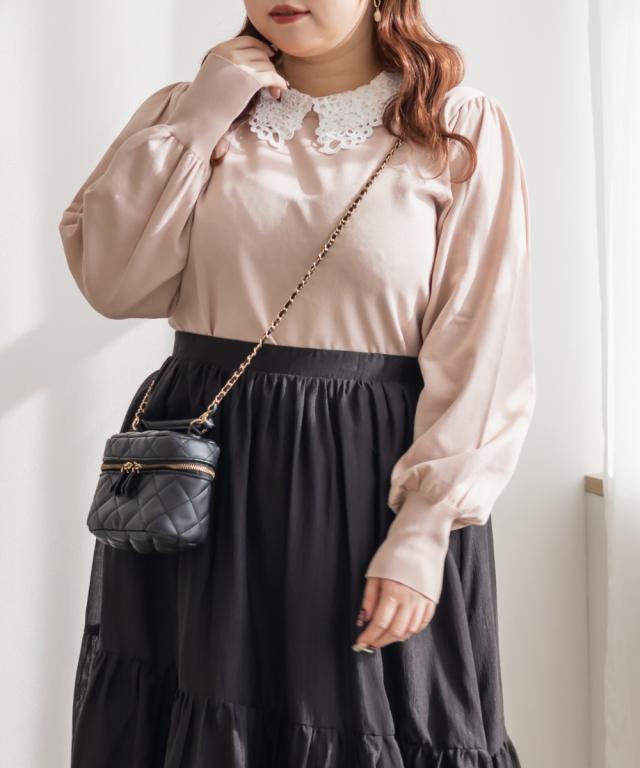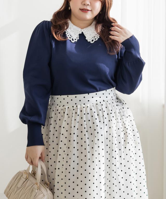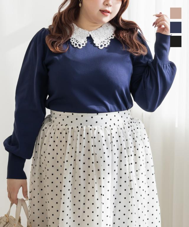 大きいサイズ/レディース/LL/3L/4L/CLETTEオリジナルレイヤーレース襟ニットプルオーバー