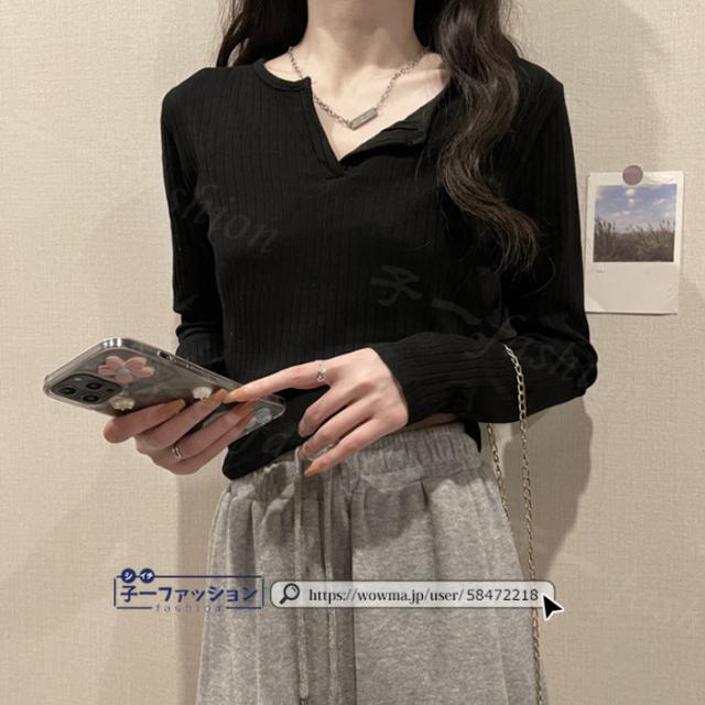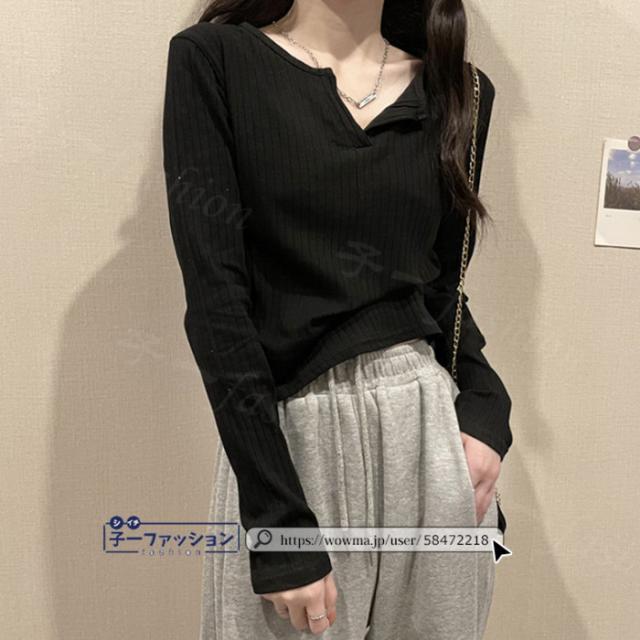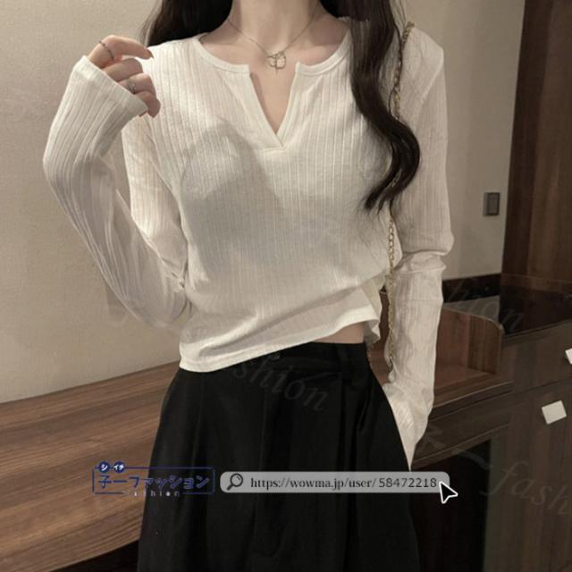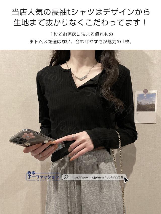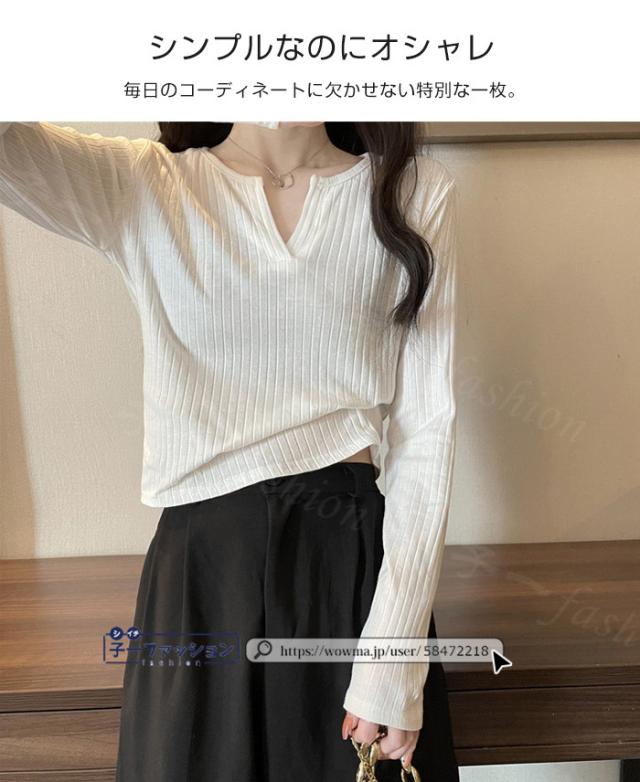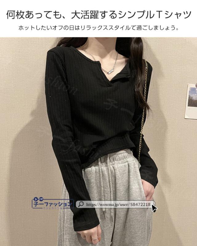 Tシャツ 長袖 カットソー 薄手 細見え Vネック 冬新作 送料無料 リブ ショルダーラインシーム スリム インナー レディース トップス ロング 体型カバー カジュアル きれいめ 春服 秋服