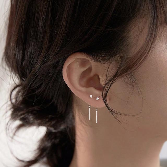 1ペア新着ミニマリストスクエアチェーンスレッダーピアス女性 、耳スタッドで睡眠、エレガントなジュエリー
