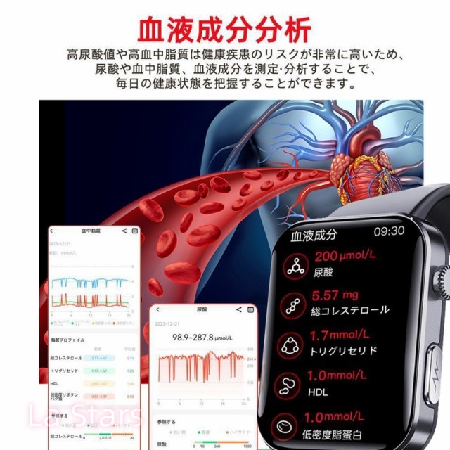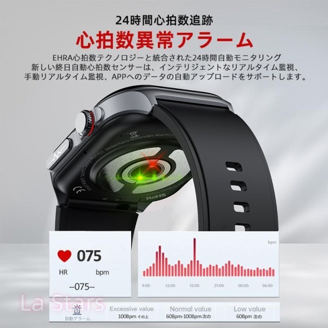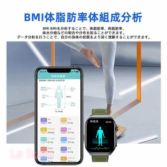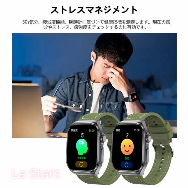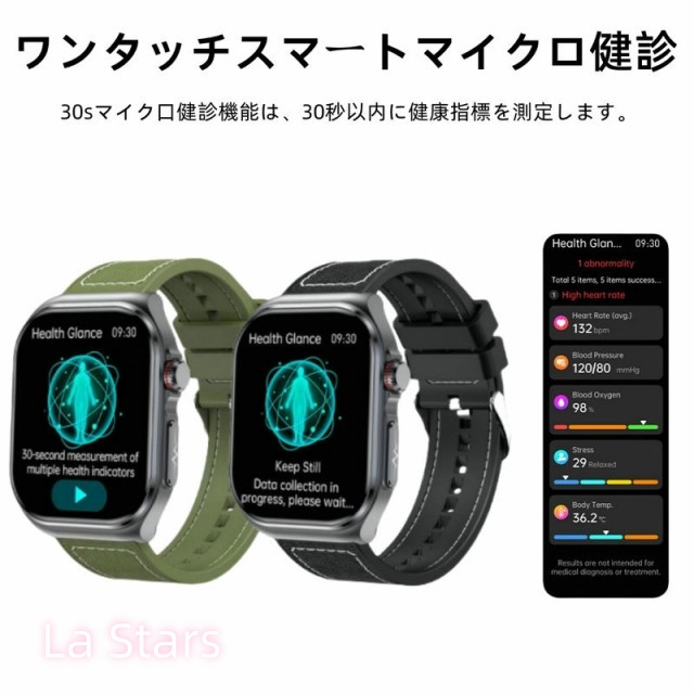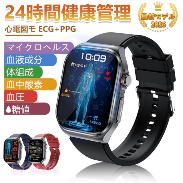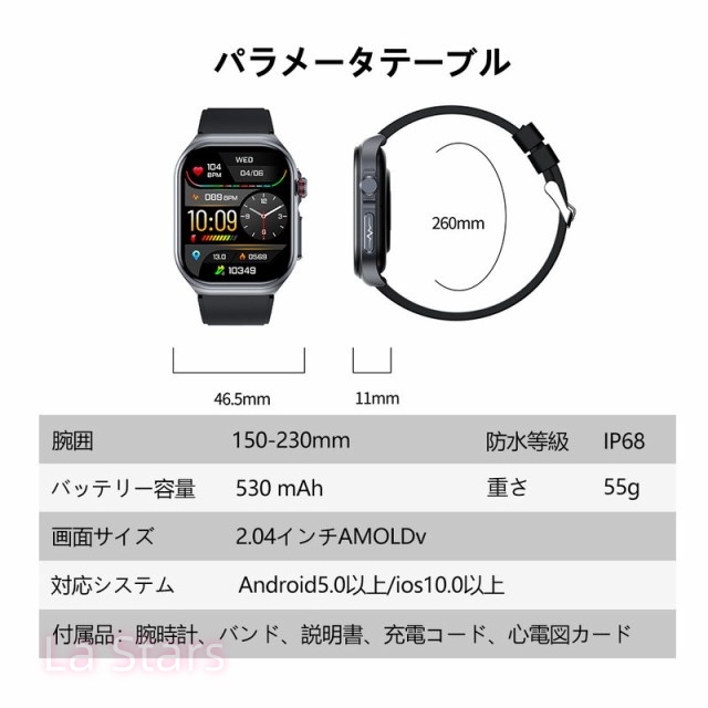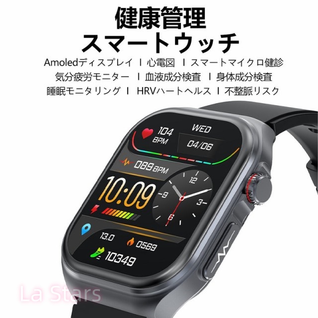 スマートウォッチ 2.04インチ大画面 ECG心電図 血糖値測定 体温 血圧 血中酸素 睡眠モニタ 体組成 通話 血中酸素 活動量計 心拍計 健康管理 運動 腕時計 レディース メンズ 着信通知 メッセージ通知 音楽制御 IP68防水