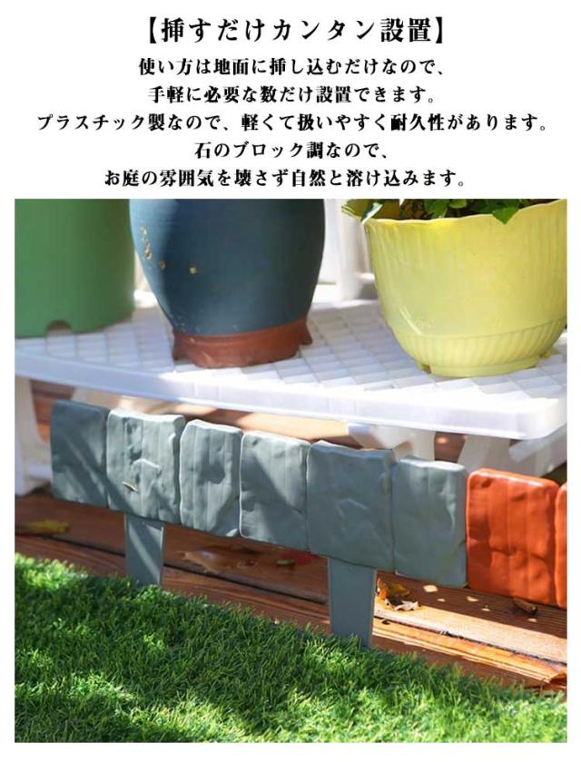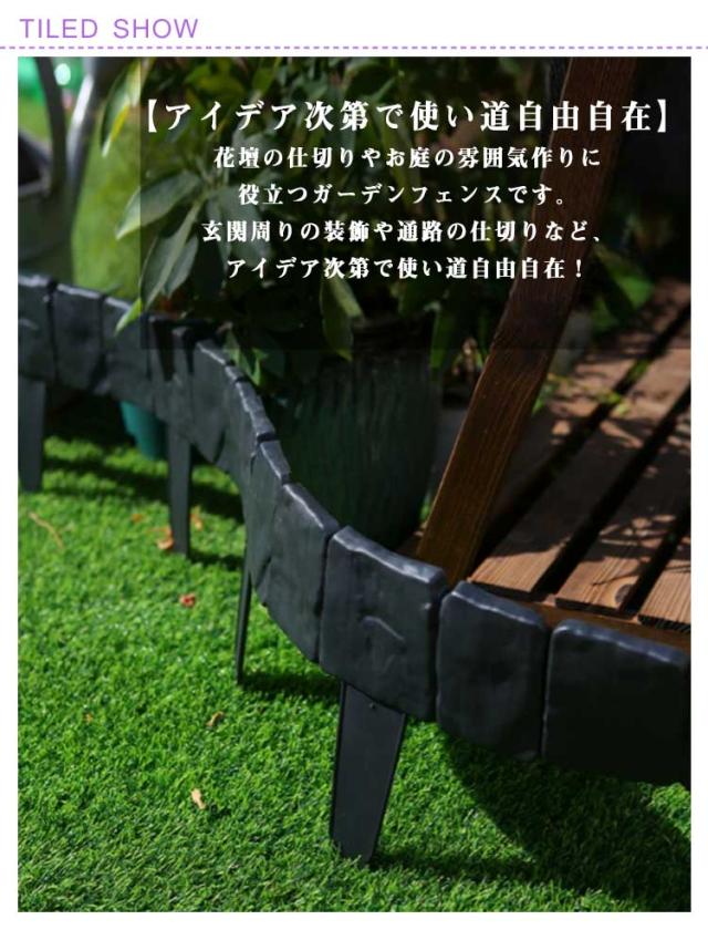 【10枚セット】 花壇 囲い 土留め ガーデンフェンス 挿すだけ 刺すだけ 目隠し 2.4m フェンス 庭 柵 仕切り 土ストッパー ミニフェンス レンガ調 ブロック調 ガーデニング 差し込み 連結 簡単設置 プラスチック 送料無料