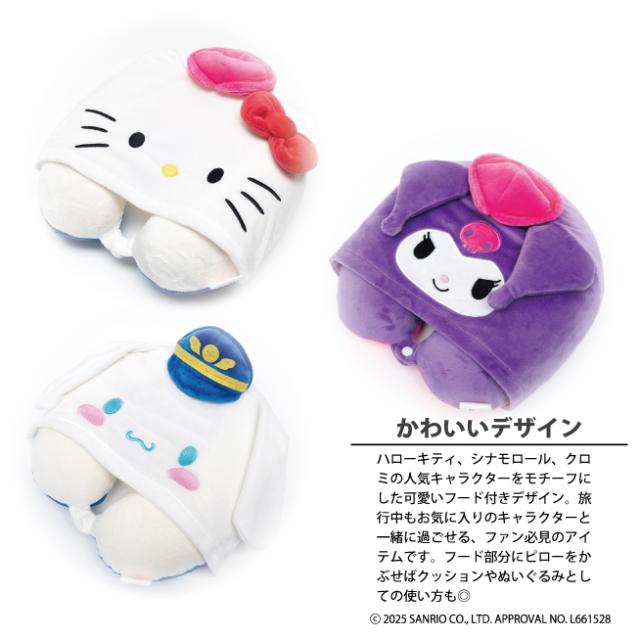 サンリオ Sanrio フードつき ネックピロー ハローキティ シナモロール クロミ サンリオキャラクターズ Sanrio characters TTC コンサイス ( ぬいぐるみ クッション 旅行 首枕 )