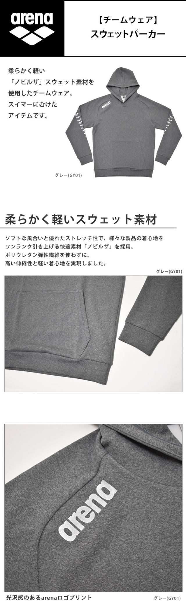 値下げ 送料無料 アリーナ arena スウェットパーカー ノビルザ 男女兼用 M L O AS6SSW30U ユニセックス チームウェア かぶり フーディー ジャージ 上 トップス 単品 ブラック グレー 杢グレー メンズ レディース