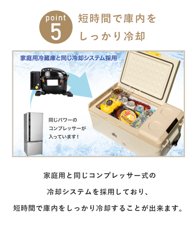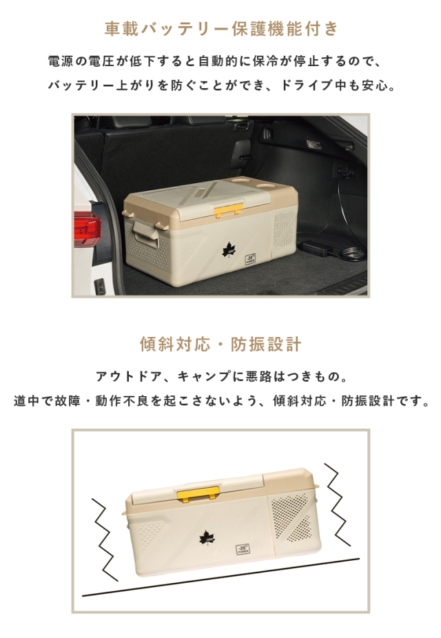キャンプや車中泊などでも庫内を一定の温度にキープできます。