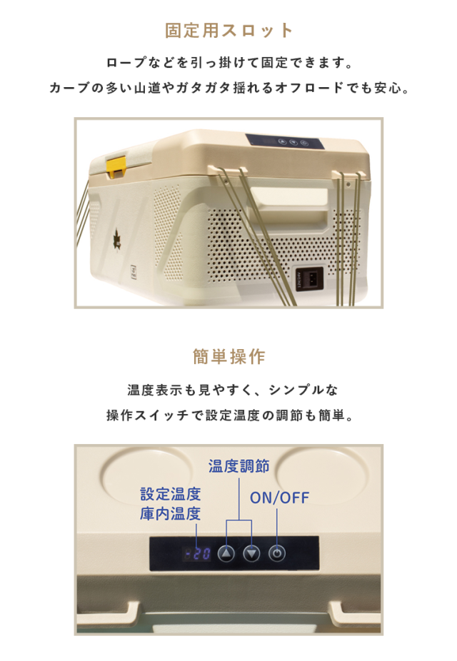 最大-20℃まで冷却可能な、コンパクトサイズのポータブル冷凍冷蔵庫。