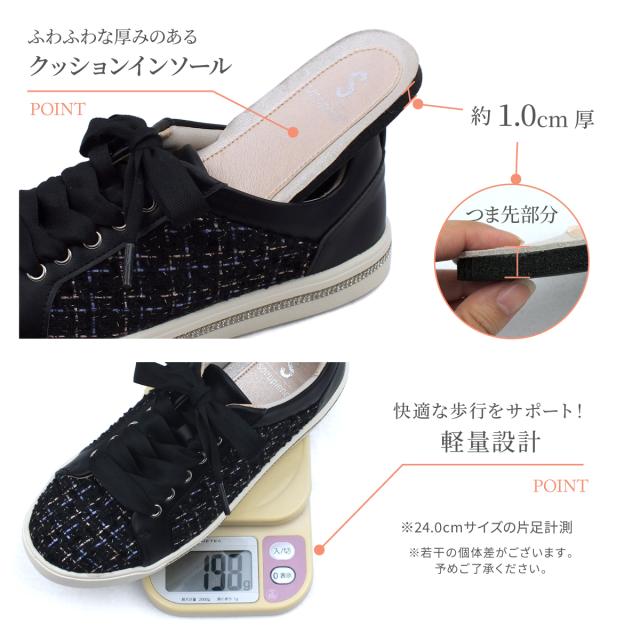 スニーカー レースアップ レディース 3E EEE 幅広設計 ビジュー コンフォート ローカット コンフォート ウォーキング カジュアルシューズ 編み上げ クッションインソール 厚底 靴 痛くない 屈曲 超軽量 スムース パール加工 ツイード プレゼント ギフト 5281