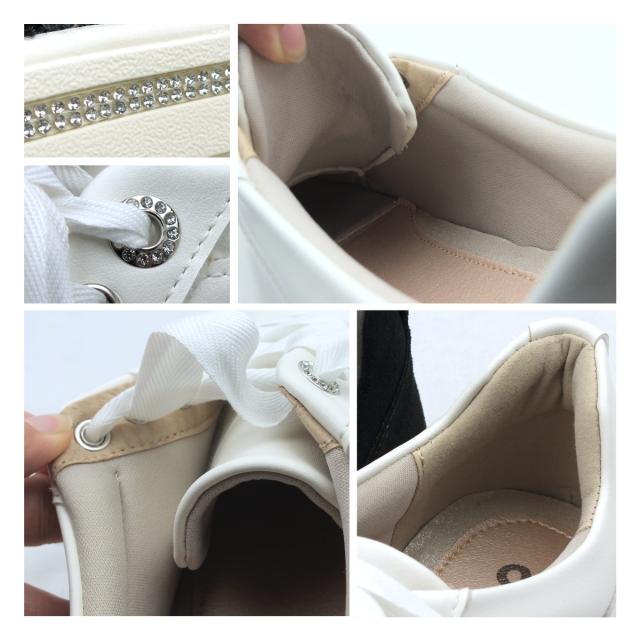 sonopieno-ソノピエーノ- “ソフトな足あたりと履き心地"がコンセプト。とっても軽い履き心地軽量レースアップスニーカーです。ソールにビジューの飾りを付けキラリと光るアクセントをプラス、3Eの幅広設計で外反母趾や幅広の方でも安心してお履き頂けます。高反発クッションインソールは歩行時の疲れを軽減!さらに取り外し可能なので靴を清潔に!履き口周りには厚みのあるクッションが入っているので足あたりがよく足を優しく包み込みしっかり固定しながらもソフトな履き心地!まるで履いていないかのような軽量設計で疲れにくいです!