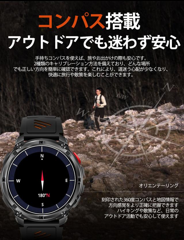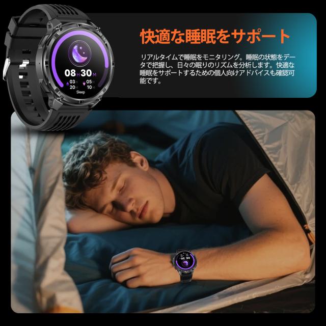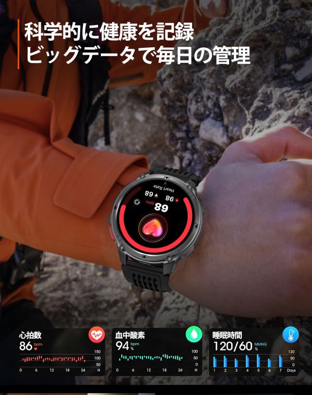 一般的なスマートウォッチの電池容量(200〜400mAh程度)を大きく上回る、1100mAhの大容量バッテリーを搭載。通常使用なら約10〜15日間、省電力モードでは最大30日間前後の連続使用が可能です。頻繁な充電から解放され、旅行や出張、アウトドアでも安心してご利用いただけます。