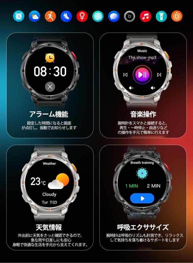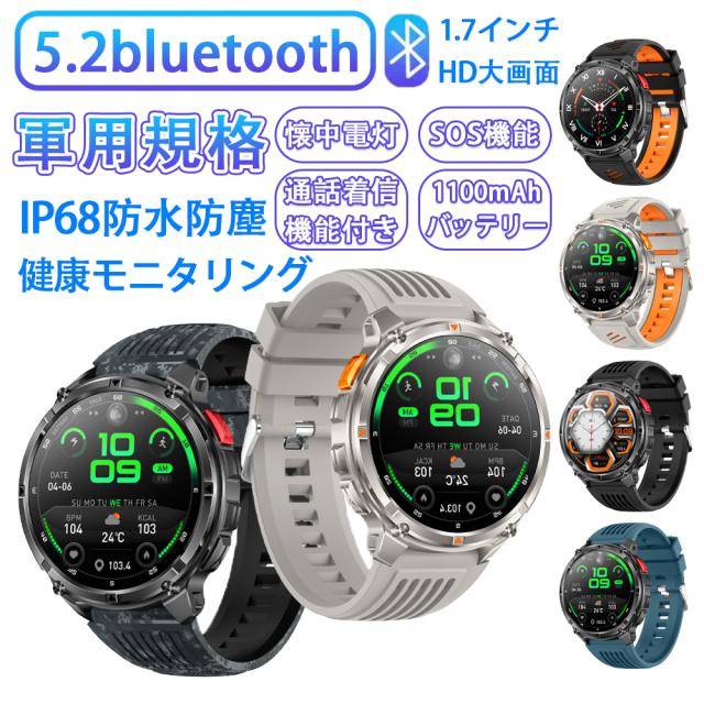 「 新生活応援」 スマートウォッチ 懐中電灯 丸型 長持ち 1100mAhバッテリー 大画面 1.7インチ iphone対応 アンドロイド対応 防水 歩数計 GPS おしゃれ 通話機能付き 着信通知 腕時計 健康管理 心拍数 血中酸素度 防塵 メンズ レディース