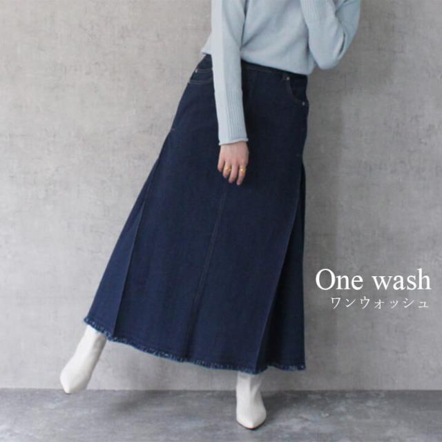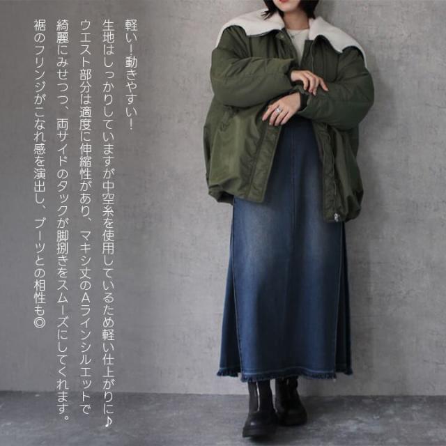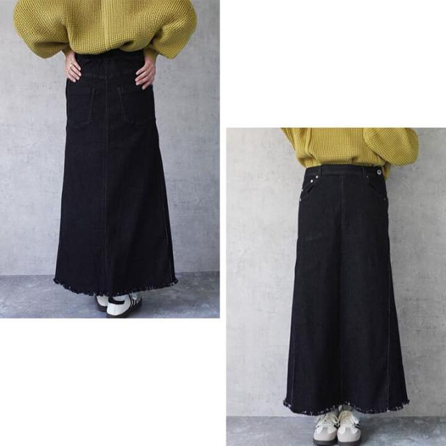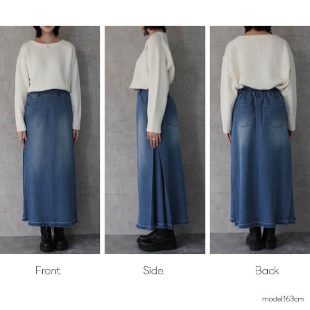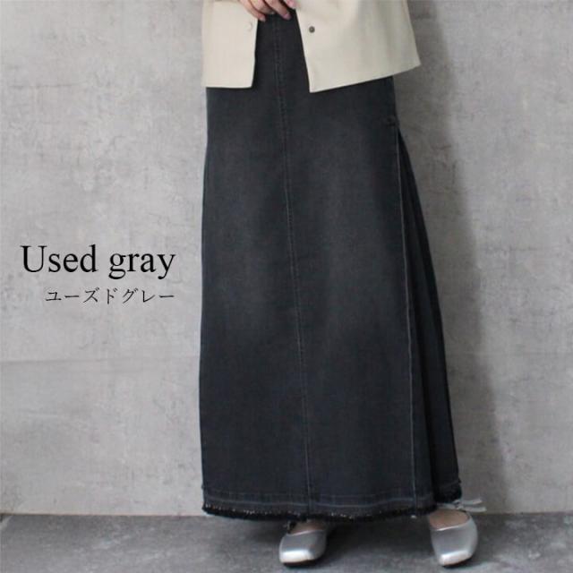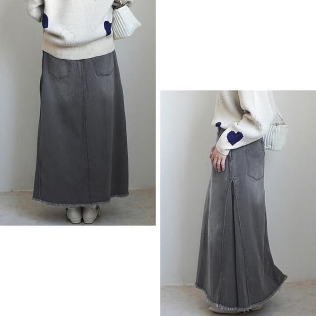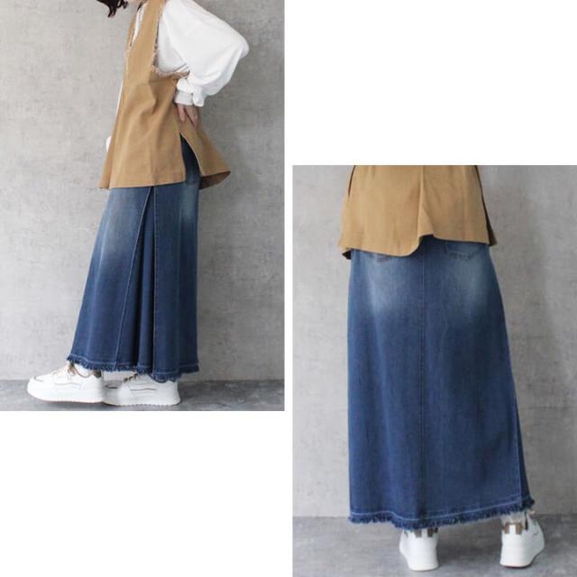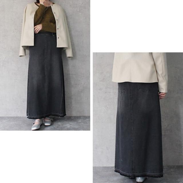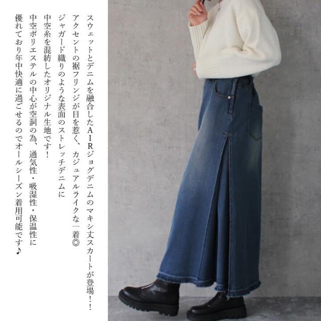 スウェットとデニムを融合したAIRジョグデニムのマキシ丈スカート。