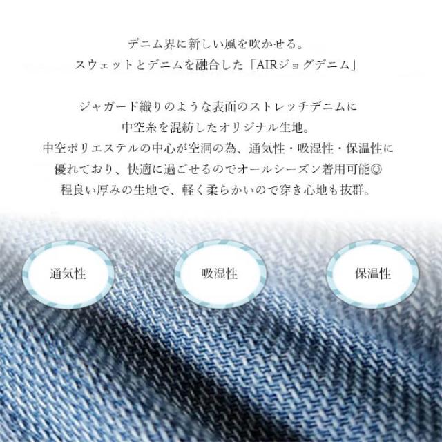 ジャガード織りのような表面のストレッチデニムに、中空糸を混紡したオリジナル生地。