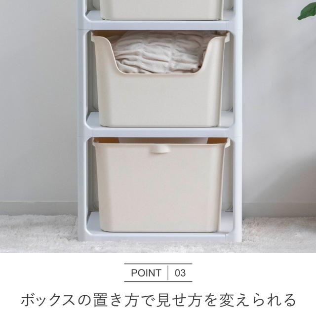 ラック 3段 収納ボックス付き カタス 組立品 日本製 ライトグレー ( 収納ケース 収納 ボックス プラスチック ケース 収納ラック 小物入れ オープンラック シェルフ おもちゃ箱 衣類収納 フリーラック おしゃれ )