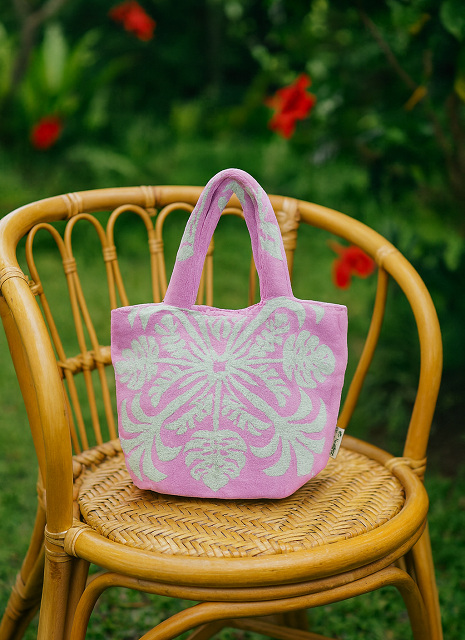ハワイアンキルト作家キャシー中島さんプロデュースの、ハワイの代表的な植物をモチーフにした、タオルでできたトートバッグです。