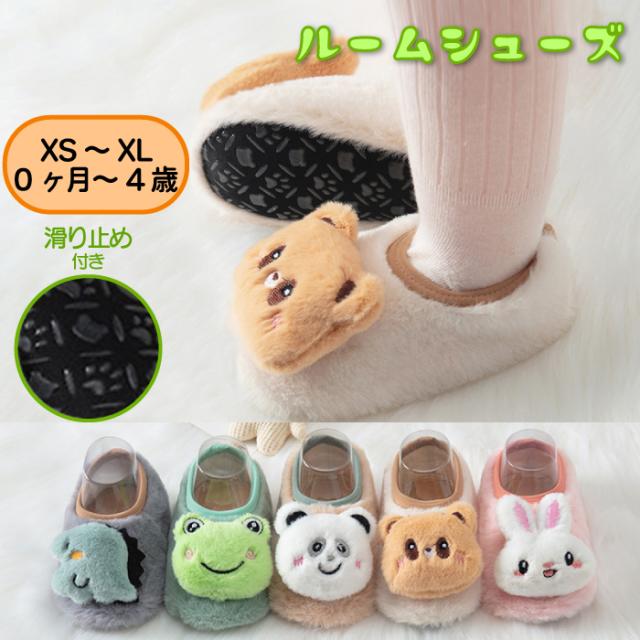 ルームシューズ くま うさぎ 滑り止め付き ベビー キッズ 子供 子ども 女の子 男の子 ベビー靴 室内シューズ 滑り止め かわいい 赤ちゃん 子供靴 ギフト プレゼント 出産祝い 可愛い おしゃれ ベビールームシューズ かえる ぱんだ 恐竜