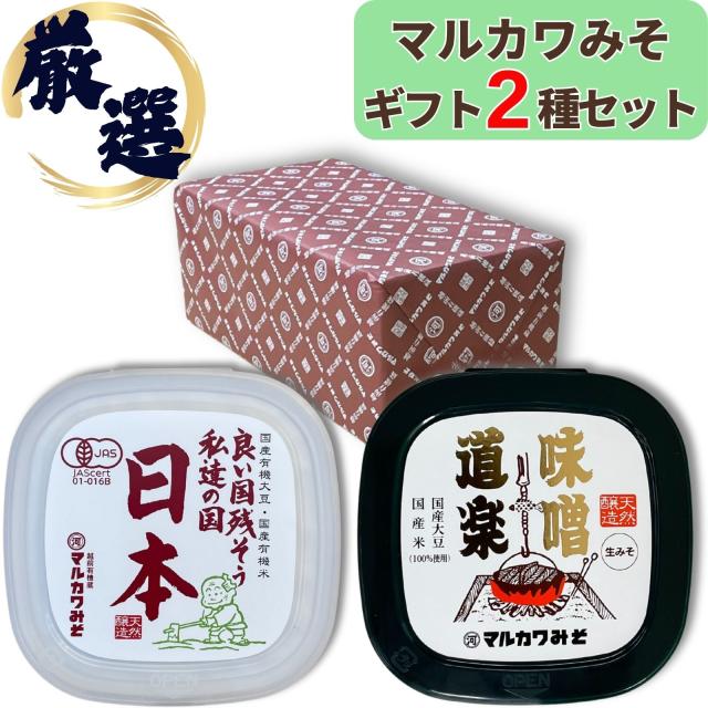 【 マルカワみそ の ギフトセット 】 味噌 2種セット ( 日本 600g 辛口 1個 / 味噌道楽 600g 甘口 1個 ) 箱入り 包装済 国産 無添加 天然醸造 農薬 / 化学肥料 不使用 2個 2個セット 2種 ギフト セット 贈答 贈答品 プレゼント 蔵付き麹菌 生味噌 木桶仕込み 地下水仕込み