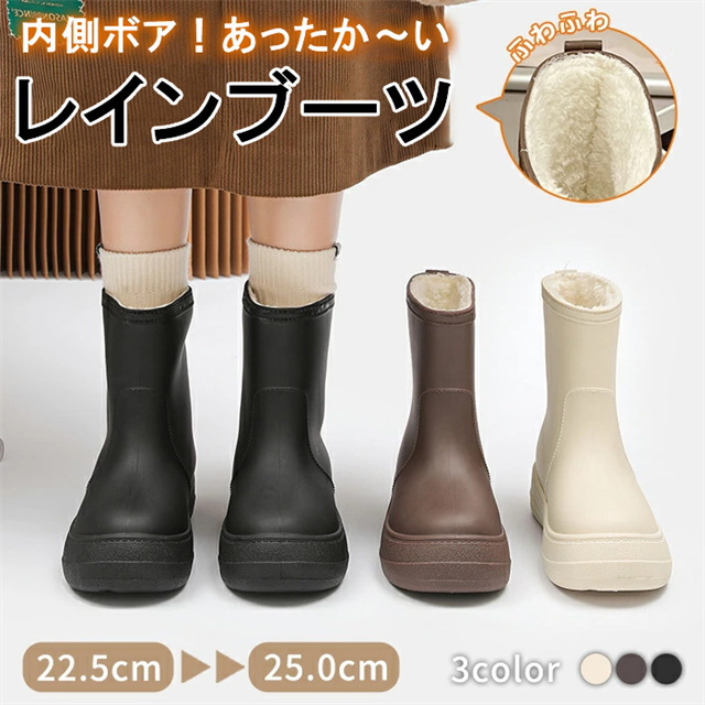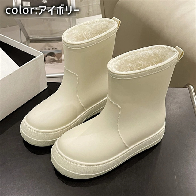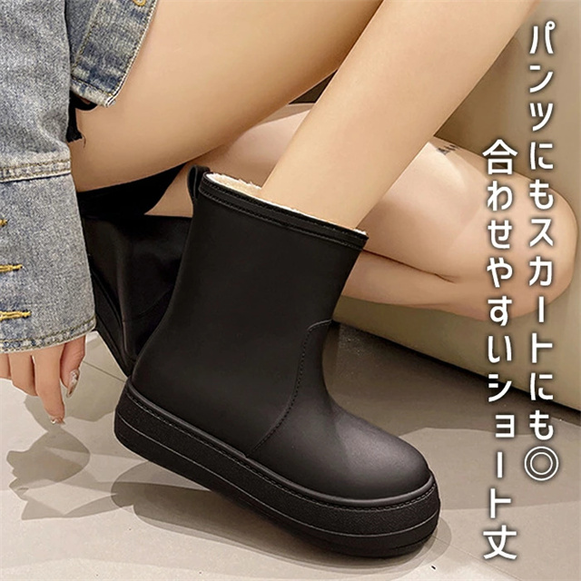 送料無料 冬新作 レインブーツ レインシューズ スノーブーツ ショート丈 長靴 裏ボア ボア付き あったかい ふわふわ 防水 防寒 PVC 完全防水 歩きやすい 通学 通勤