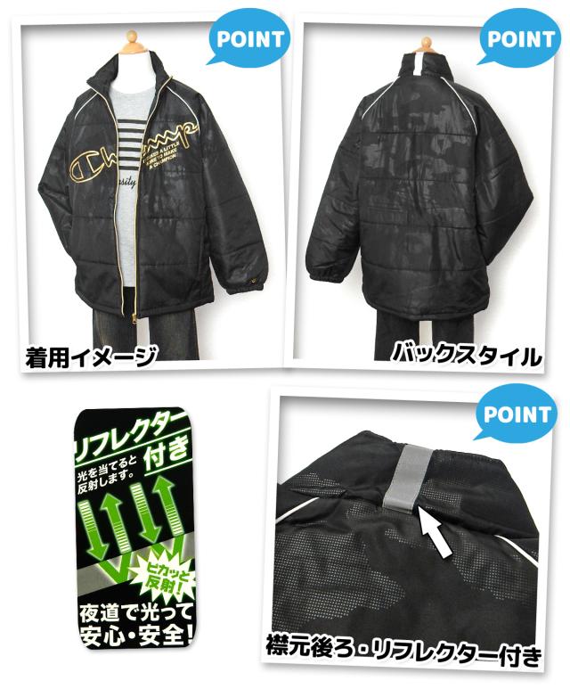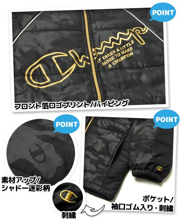 【送料無料】男児 ジュニア 中綿 ジャケット Champion/チャンピオン フルジップ アウター あったか 保温 Win-Heat素材 5jr-2332b-bk