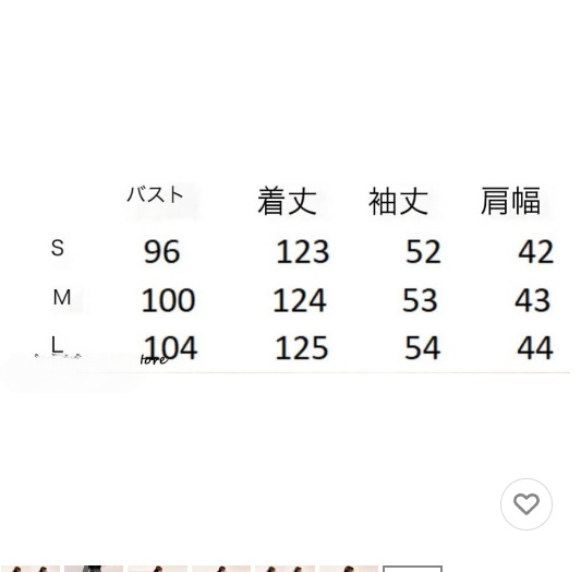 L:着丈124cm バスト100cm 肩幅53cm 袖丈52cm