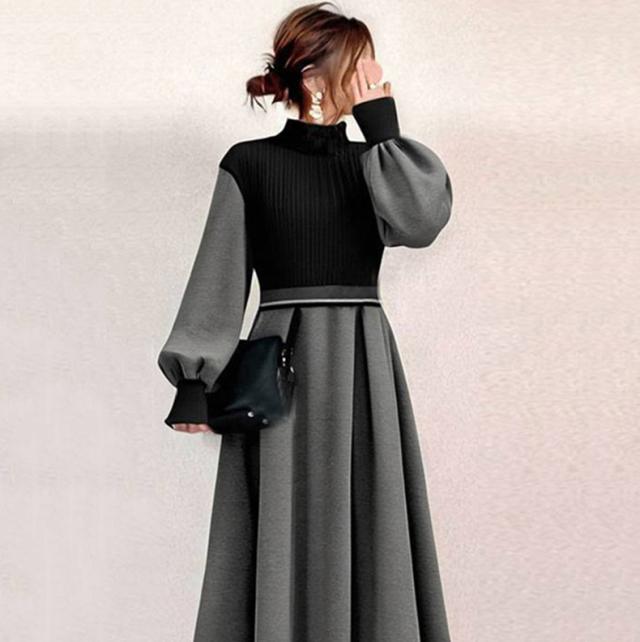 ンピース 秋冬 きれいめ レディース ドッキングワンピース ロング ニットワンピース プリーツ 大きいサイズ マキシ丈 ドレス セーター 重ね着風 フリル 切り替え レイヤード フレア 長袖 ミモレ丈 カジュアル シンプル 春 秋 冬 30代 40代 50代