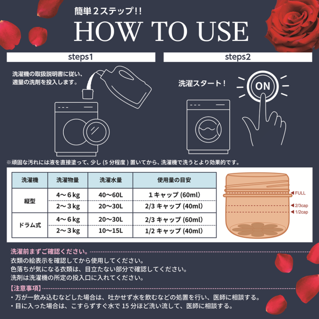 ドラム型:2/3キャップ(40ml) / 1/2キャップ(30ml)